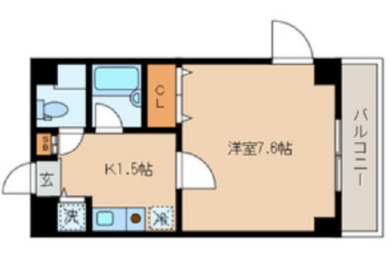 K 1.5帖/洋室 7.6帖 - 向き