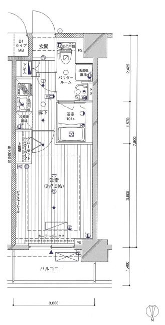 内廊下になっており、北向きと南向きがございます。