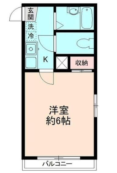 【居間・リビング】南向きバルコニー角部屋の1K洋室6帖
