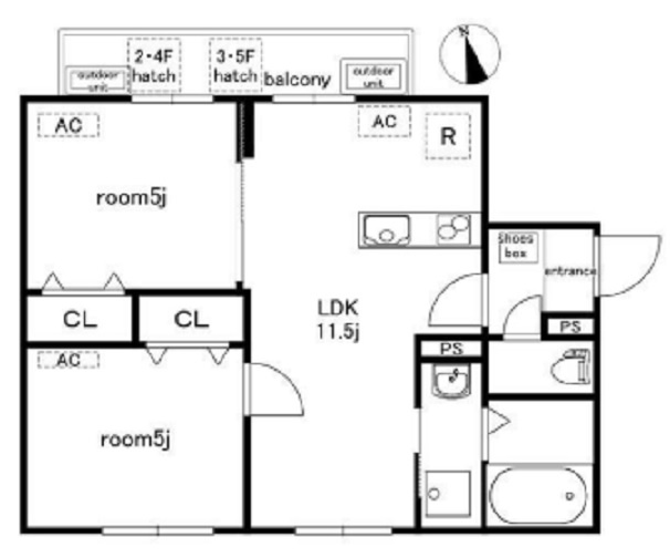 洋室 5.0帖/洋室 5.0帖/LDK 11.5帖 - 向き